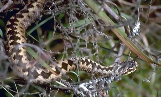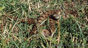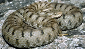 - Taille : 30 à 50 cm - Ressemble à la vipère péliade, n'a qu'une plaque sur le vertex. - Coloration grise ou beige, sur le dos zigzag brun foncé à noir. |