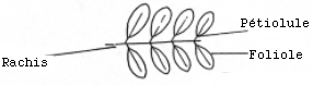 Imparipennée : feuilles composée dont les folioles sont en nombre impair (avec une foliole terminale).