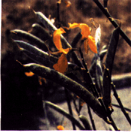 - Fruits : gousses (6-8 cm x 6-8 mm), d'abord velues et soyeuses,