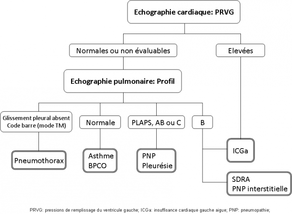 IntroductionLe diagnostic étiologique d’une dyspnée aigue aux urgences est difficile, pouvant conduire à un traitement erroné générateur de surmortalité. Notre objectif était d’évaluer les performances diagnostiques de l’échographie cardio-pulmonaire devant une dyspnée aiguë aux urgences comparativement à la prise en charge habituelle. Matériel et méthodesLes patients bénéficiaient dès leur arrivée d’une échographie cardio-pulmonaire réalisée par un médecin urgentiste en plus de la prise en charge standard. La performance de l’examen clinique, de la radiographie pulmonaire, du NT-proBNP et de l’échographie était comparée au diagnostic final établi par deux médecins indépendants. Résultats130 patients étaient analysés. Pour le diagnostic d’insuffisance cardiaque gauche aigue, l’échographie cardio-pulmonaire avait une faisabilité de 100% et une exactitude de 90% IC95 [84;95] contre 67% [57;75] pour l’examen clinique, p = 0,0001 et 81% [72;88] pour la combinaison « clinique – NTproBNP – radiographie » p =0,04. On diagnostiquait une pleuro-pneumopathie avec une exactitude de 86% [80;92], une décompensation de BPCO ou un asthme avec une exactitude de 95% [92;99]. L’examen durait en moyenne 12 +/- 3 minutes. ConclusionL’échographie cardio-pulmonaire réalisée par un urgentiste permet en 12 minutes de faire le diagnostic étiologique d’une dyspnée aigue aux urgences avec une exactitude de 90%. |
